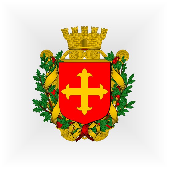 Supprimer(2014) Divisé en chevron : au 1er de sable plain, au deuxième d’azur à la rose d’argent ; au chevron de sinople soutenu d’argent, chargé sur chaque flanc de deux épis de blé empoignés en barre à dextre, en bande à senestre, le tout brochant ; au lion naissant d’argent surbrochant en chef.