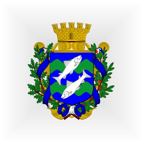 De sable, à dix coquilles d'argent (4, 3, 2 et 1), au chef cousu d'azur, chargé de trois fleurs de lys d'or.